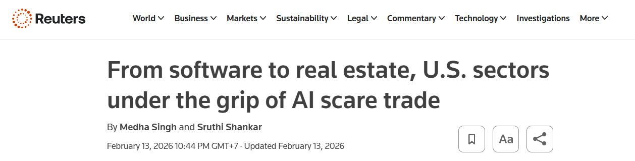 Đó là “AI Replacement Trade” – làn sóng giao dịch dựa trên kỳ vọng rằng trí tuệ nhân tạo sẽ làm xói mòn mô hình kinh doanh hiện hữu.