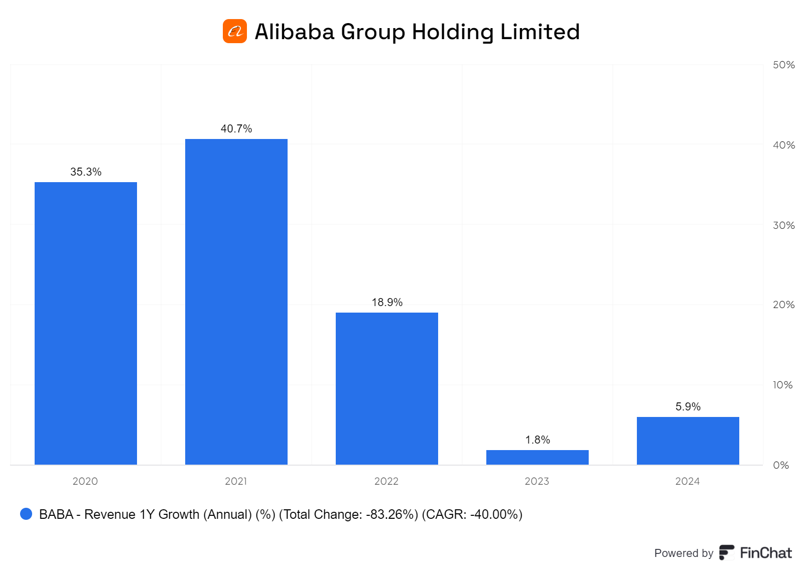 Tháng 2/2024, đã có lúc giá của giảm gần 80% so với mức đỉnh năm 2020, đẩy vốn hóa của công ty xuống mức thấp nhất mọi thời đại, thậm chí chỉ còn ngang bằng đối thủ mới nổi PDD Holdings Inc.