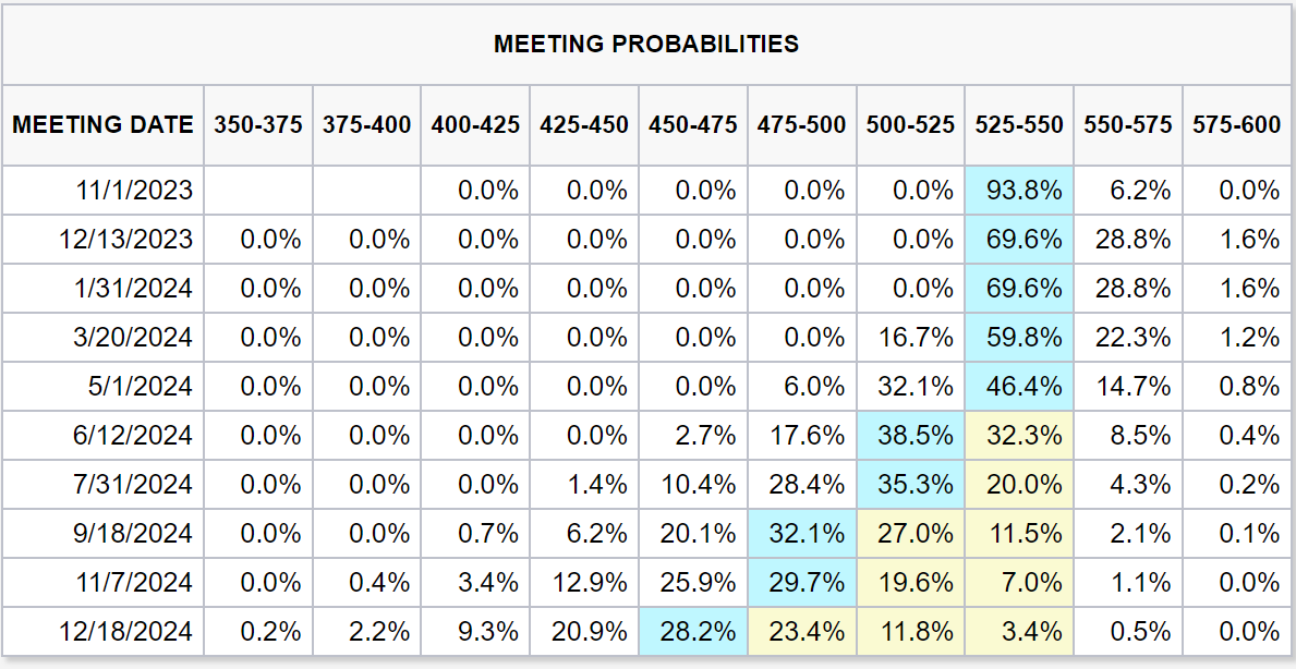 Thị trường vẫn đặt cược phần lớn khả năng Fed sẽ giữ nguyên lãi suất trong cuộc họp tháng 11/2023.