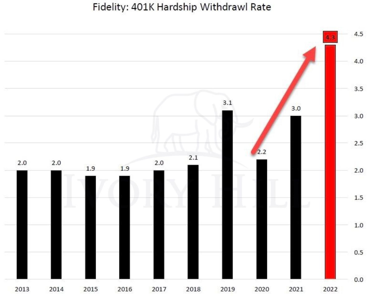 FYI: Tỷ lệ rút tiền trong mục 401k vì “lý do cấp bách” (401k hardship withdrawal) tại Fidelity tăng lên mức cao đáng báo động vào năm 2022.