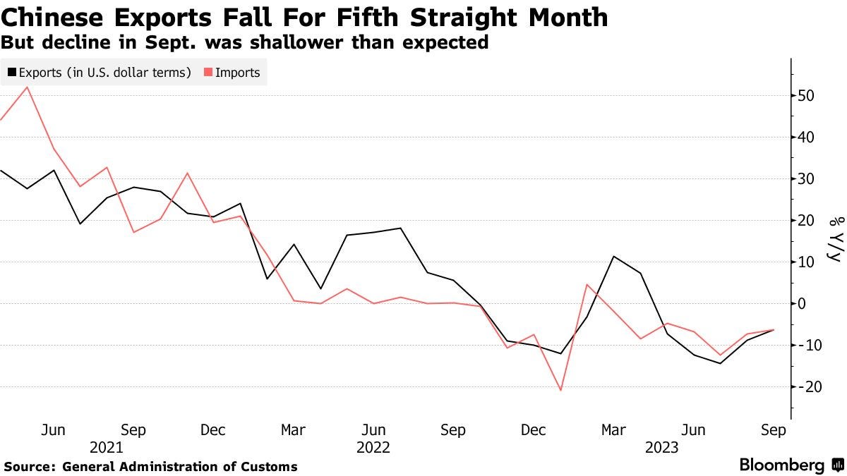 Đi kèm với đó là sản lượng xuất khẩu (một trong những lĩnh vực quan trọng nhất của kinh tế Trung Quốc) tiếp tục giảm trong 5 tháng liên tiếp: