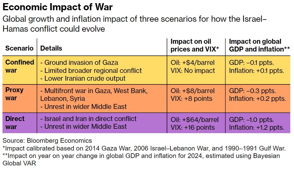 Bloomberg cũng đưa ra 3 kịch bản mà cuộc chiến này có thể ảnh hưởng đến nền kinh tế tùy thuộc vào cách chiến tranh leo thang…
