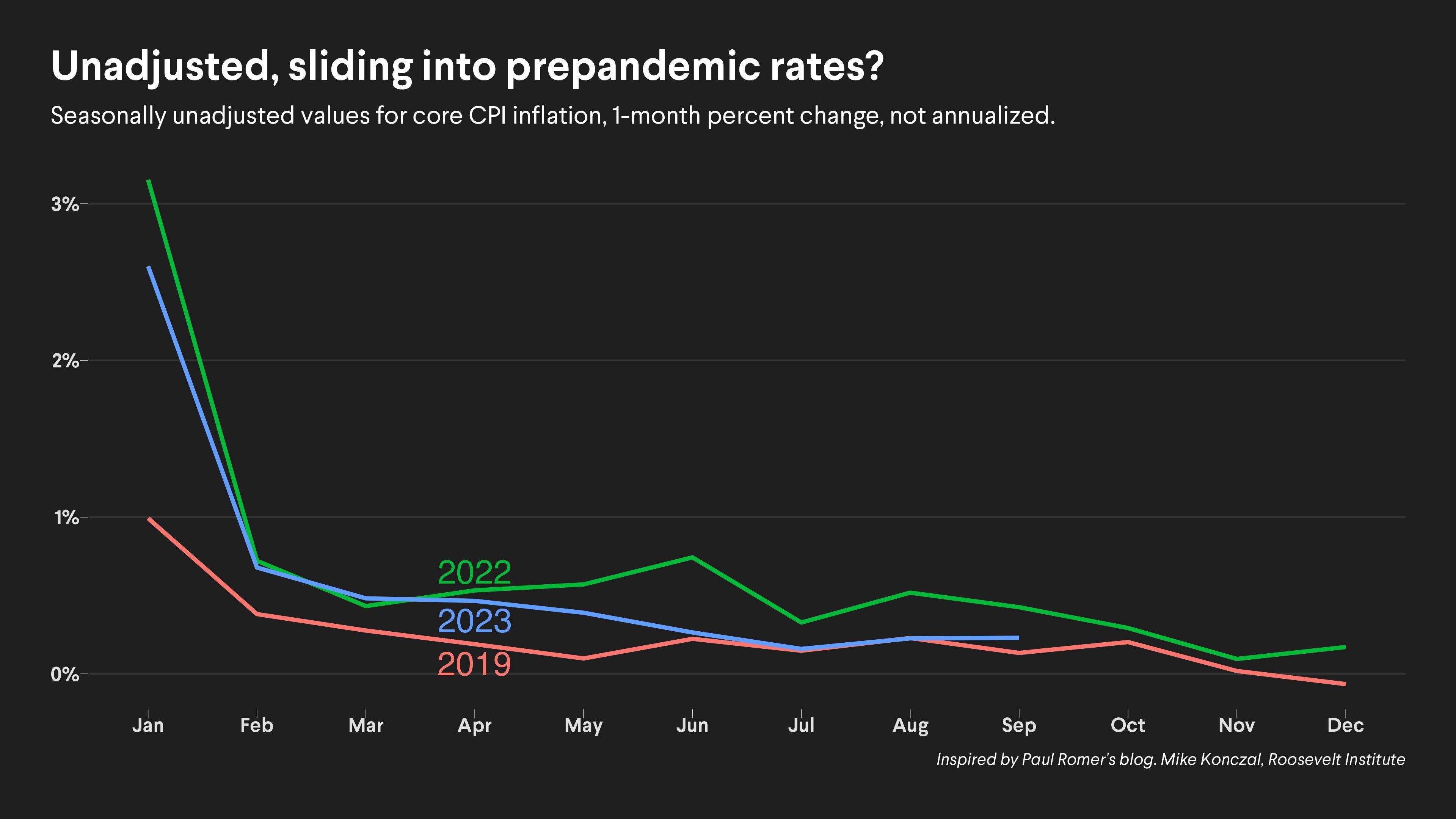 Tuy nhiên, nếu nhìn vào con số lạm phát của năm nay, rõ ràng tiến trình lạm phát cốt lõi m/m (Core CPI m/m) chưa điều chỉnh theo mùa vụ năm nay đang “bình thường hóa” về mức năm 2019 (trước Covid).