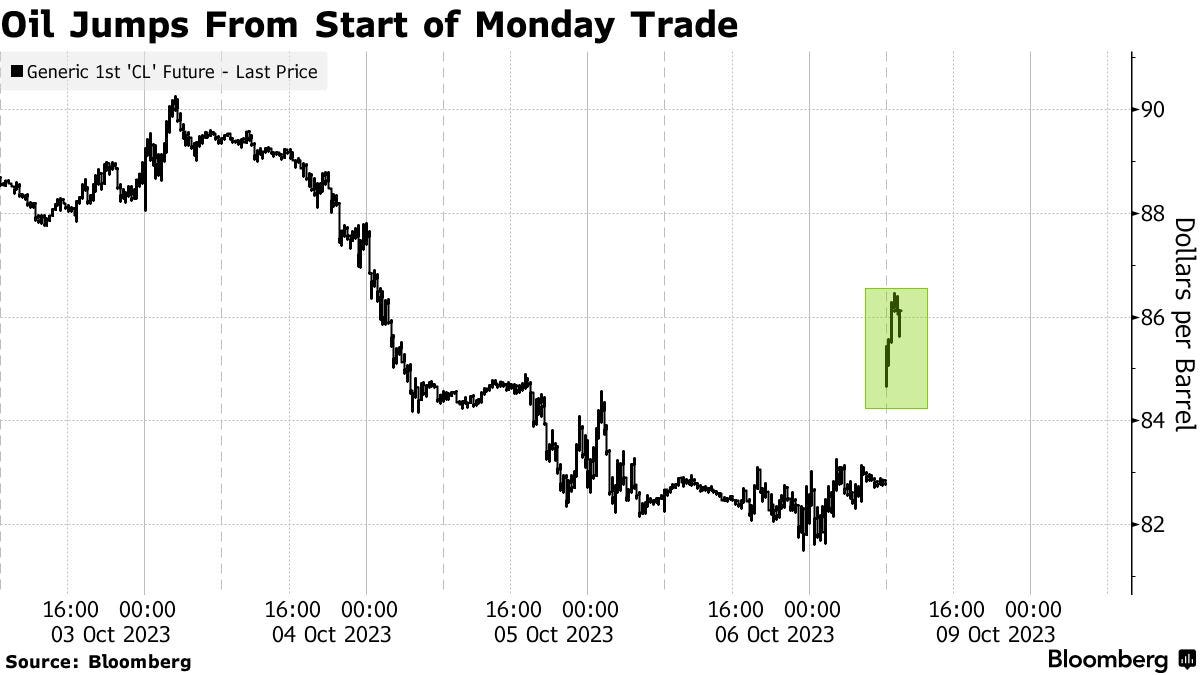 Mặc dù Israel không phải là nhà sản xuất dầu, nhưng lo ngại về tác động của cuộc chiến tranh đến khu vực Trung Đông và việc Iran (quốc gia ủng hộ Hamas) có thể sẽ phải đối mặt với các biện pháp trừng phạt của phương tây đã đẩy giá dầu tuần qua lên cao: