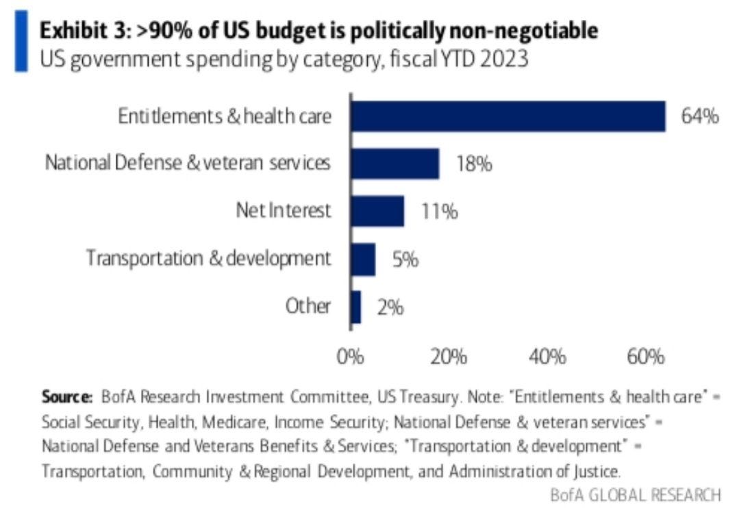 Tuy nhiên, đối với chính phủ Mỹ: có đến >90% các khoản chi phí công là không thể thương lượng chính trị để cắt giảm (politically non-negotiable).