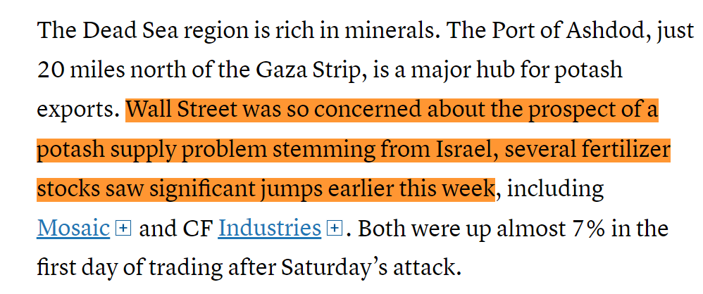 Vùng Biển Chết (Dead Sea) giàu khoáng sản và là trung tâm xuất khẩu Kali lớn. Cuộc chiến này có thể ảnh hưởng nhẹ đến giá phân bón và ngành nông nghiệp.