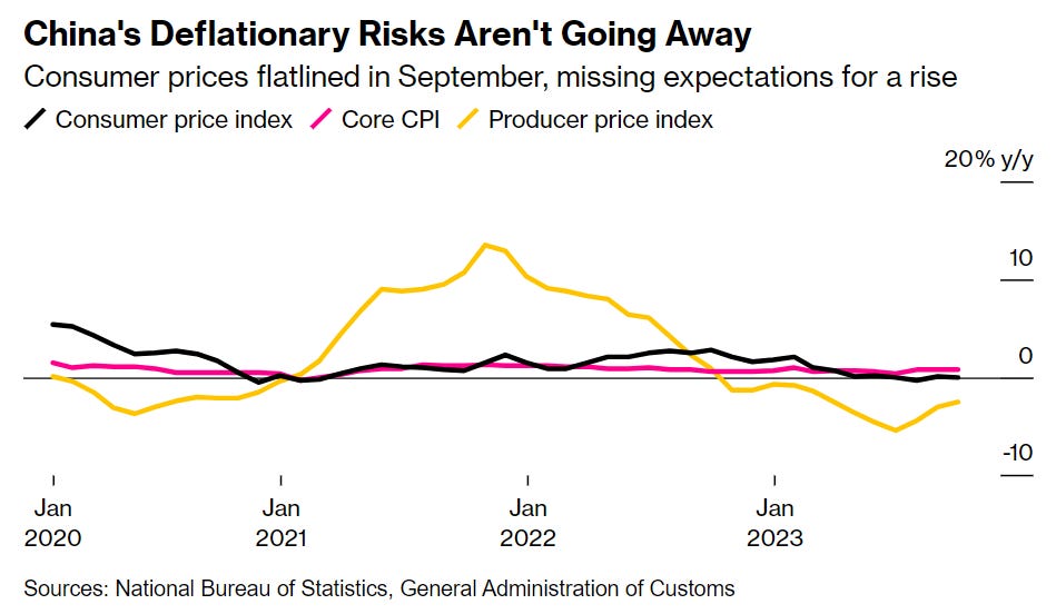 Tăng trưởng CPI của Trung Quốc tiếp tục chững lại (~0%) trong tháng 9, trong khi PPI vẫn tăng trưởng ở mức âm: