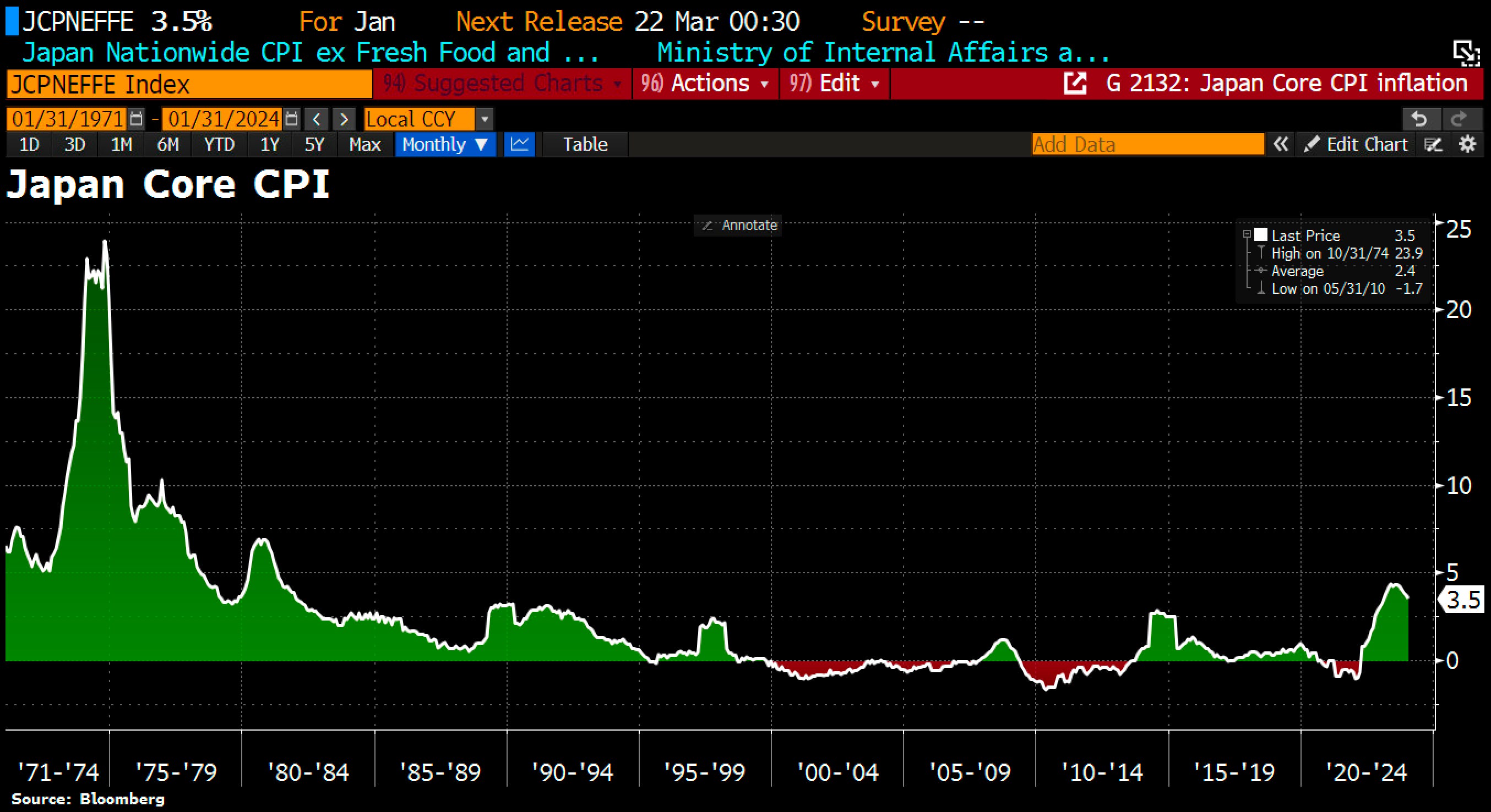 CPI tổng hợp tháng 1/2024 của Nhật đạt +2.2% y/y - cao hơn dự báo +1.9%