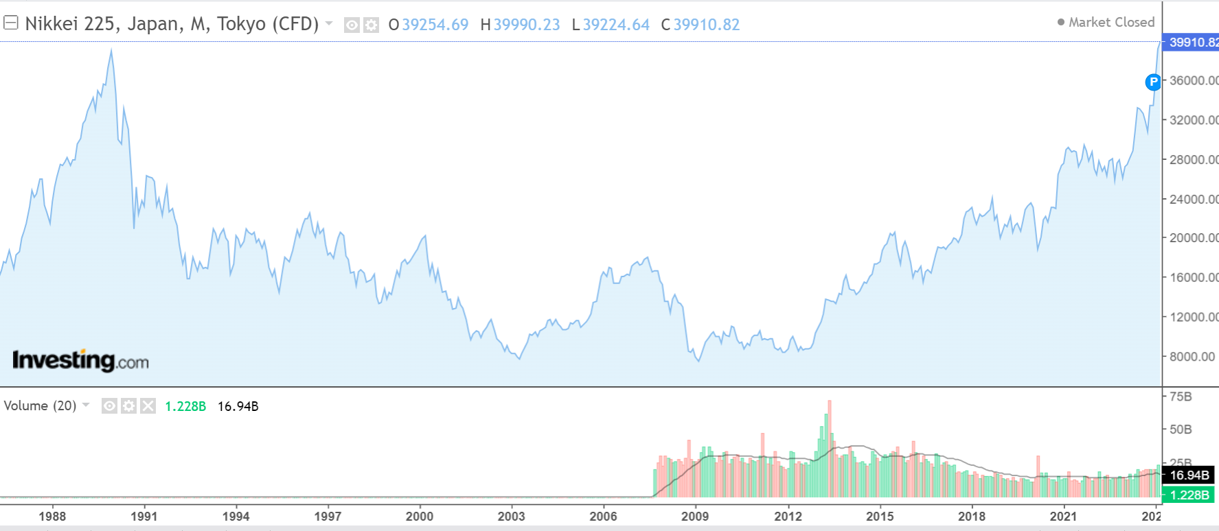Hiện tại, chứng khoán Nhật đã vượt mức đỉnh năm 1990s, và chứng khoán Nhật vẫn còn không gian tăng trưởng.