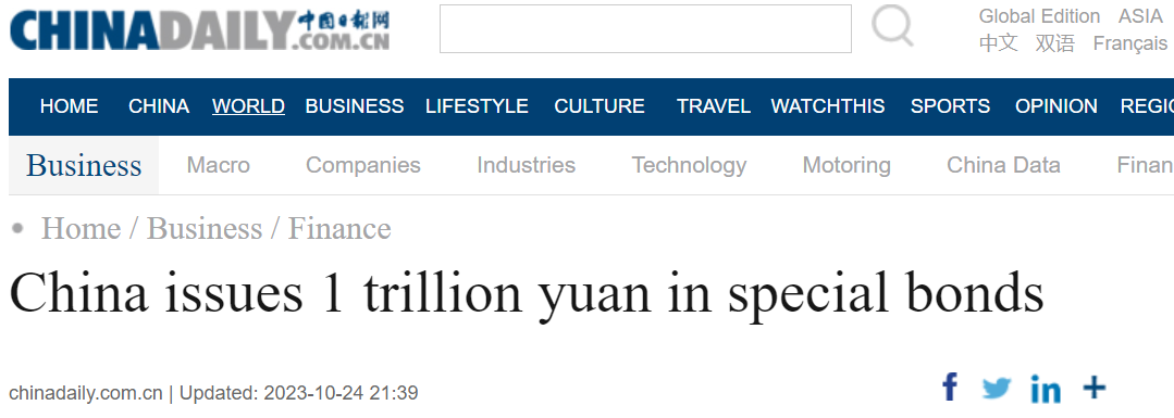 Đặc biệt khi Bắc Kinh phát hành CNY 1,000 tỷ trái phiếu đặc biệt siêu dài hạn (thông báo từ tháng 10/2023) để tài trợ cho các chương trình thúc đẩy kinh tế (và còn đang lên kế hoạch một đợt phát hành mới).