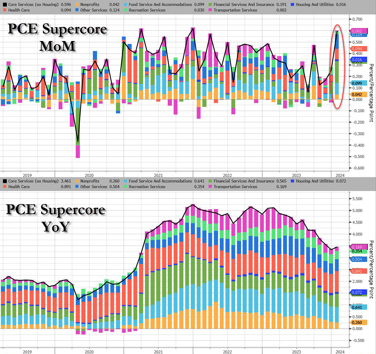 Cả CPI và PCE siêu cốt lõi (không tính chi phí nhà ở) đều quay đầu tăng trở lại