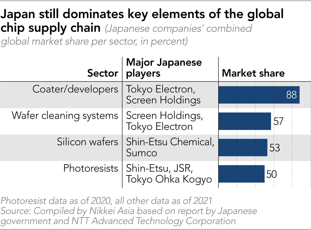 … thì Nhật vẫn giữ vững vai trò vô cùng quan trọng trong nhiều mắt xích của chuỗi cung ứng chip bán dẫn toàn cầu: