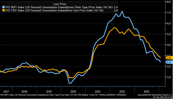 Trong khi đó, PCE tuần qua (một trong những cơ sở quan trọng để Fed quyết định lãi suất) cho thấy lạm phát tiêu dùng (y/y) vẫn đang trên đà giảm: