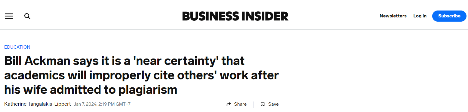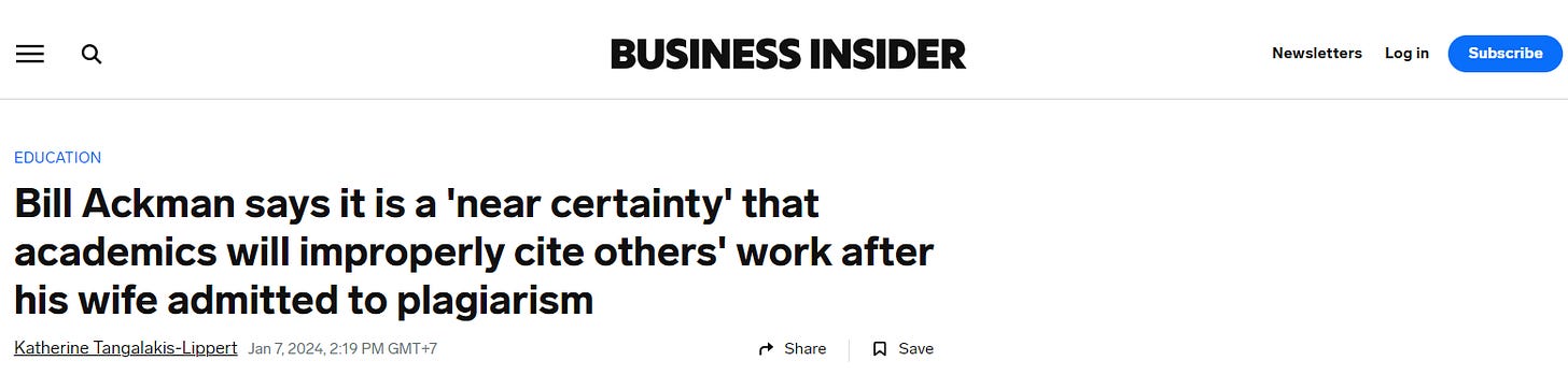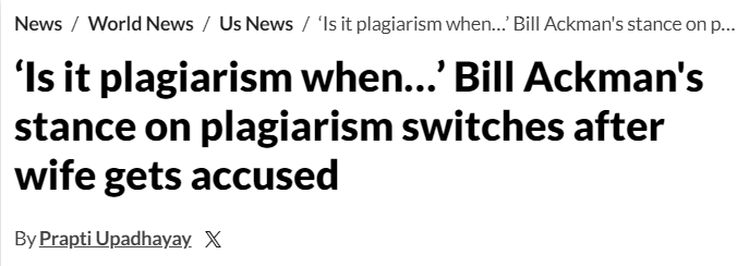 Như đã đề cập phía trên, khi những cáo buộc đạo văn của cựu chủ tịch Hardvard Claudine Gay nổ ra, Ackman đã nói rằng những cáo buộc đạo văn nhắm đến bà Gay là “một bê bối nghiêm trọng”… hay “vết nhơ làm ảnh hưởng danh tiếng của Harvard”.