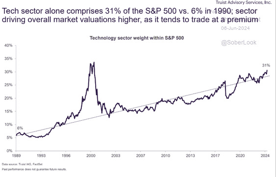 Khối công nghệ chiếm 31% trọng số trong rổ S&P500.