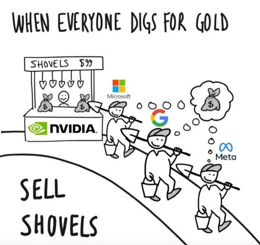 … thì Nvidia lại cung cấp cho họ xẻng đào vàng (GPUs, APIs, chip AI…).