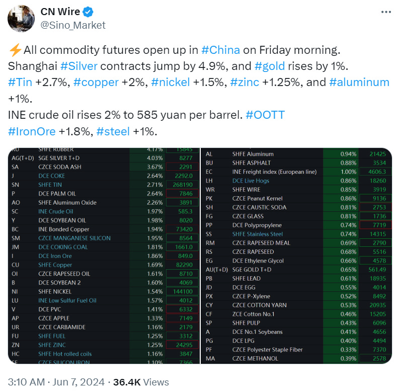 Giá các hợp đồng Futures về bạc, vàng, thiếc, nickle, đồng, kẽm… tăng cao – đặc biệt tại thị trường Trung Quốc.