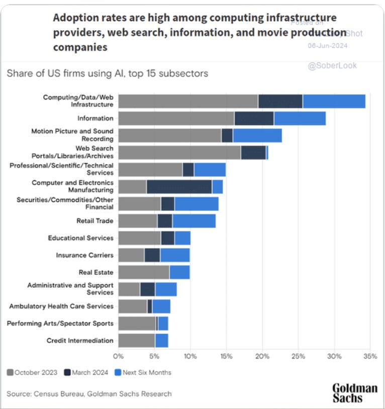 GS ước tính sự bùng nổ của generative AI đã dẫn đến mức tăng ~+15% về năng suất lao động và GDP của Mỹ.