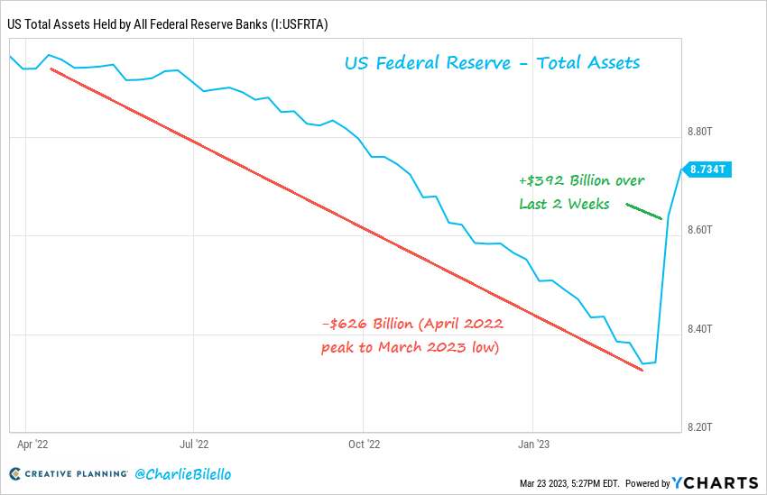 Trong tuần qua, Fed đã cho các ngân hàng tại Mỹ vay tổng cộng +USD 475 tỷ để chống chọi với cuộc khủng hoảng ngân hàng.