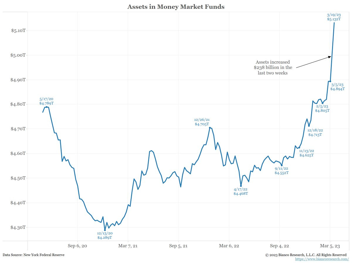 Các quỹ thị trường tiền tệ (money market funds) đã nhận thêm +117 tỷ USD tiền đầu tư trong tuần qua & +121 tỷ USD vào tuần trước.