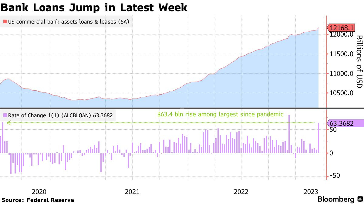 Tổng các khoản vay từ ngân hàng (bank lendings) đã tăng thêm +63.4 tỷ USD vào tuần trước, trong đó các ngân hàng lớn đang chiếm 60% giá trị bank lending trên thị trường.