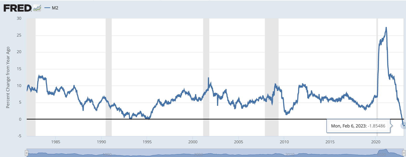 Cung tiền M2 lần đầu tiên giảm kể từ khi chỉ số này được sử dụng chính trong các mô hình kinh tế.