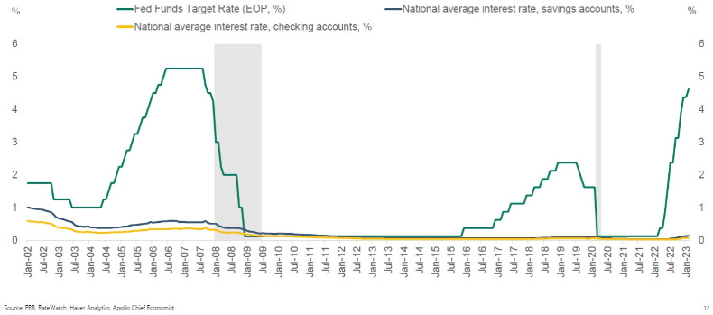 Việc siết chặt vay tiêu dùng do banking crisis cũng có thể khiến cho lạm phát giảm nhanh chóng xuống thiểu phát, và thậm chí là giảm phát. Bởi lẽ tiêu dùng chiếm đến 70% tỷ trọng trong GDP!