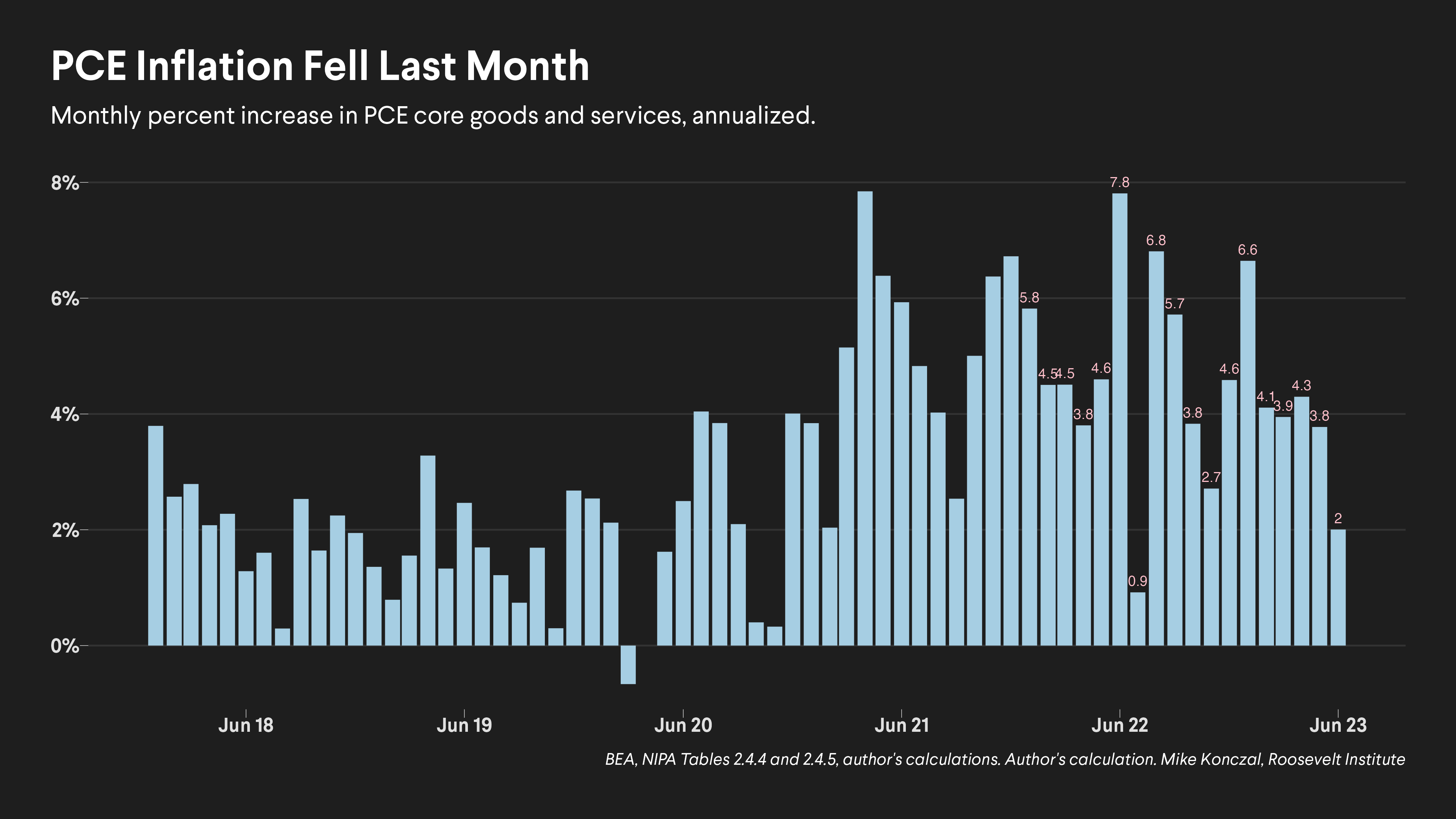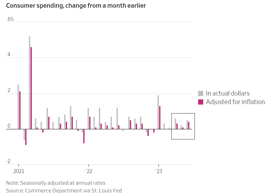 Tăng trưởng PCE theo tháng chỉ ở mức +2% m/m trong tháng 6/2023 - con số thấp nhất trong vòng 10 tháng gần đây.