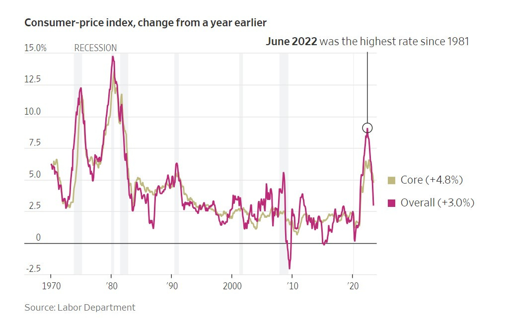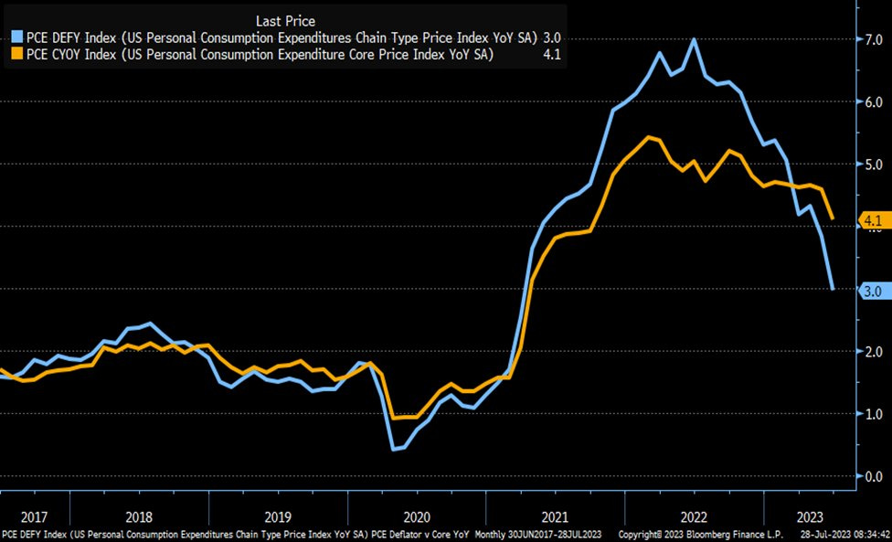 Recall: Trong khi lạm phát (CPI) tổng hợp tháng 6/2023 chỉ còn +3% y/y, CPI cốt lõi vẫn tăng cao đến +4.9% y/y.