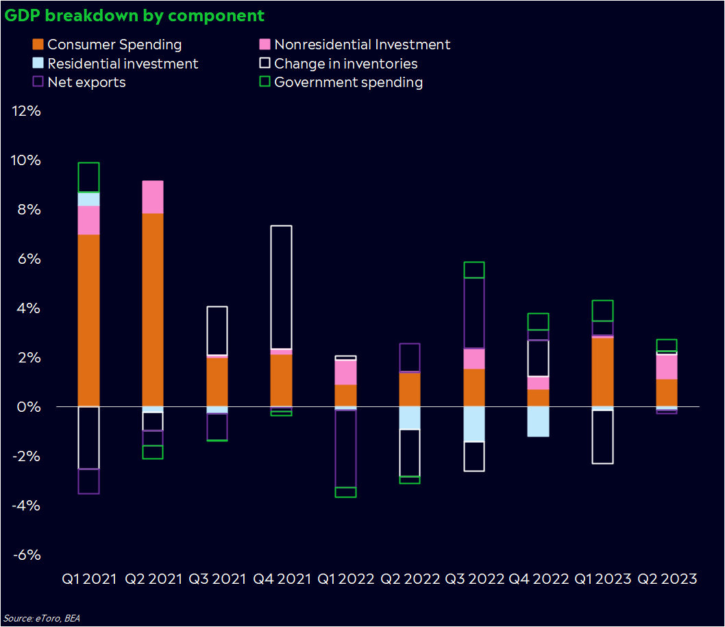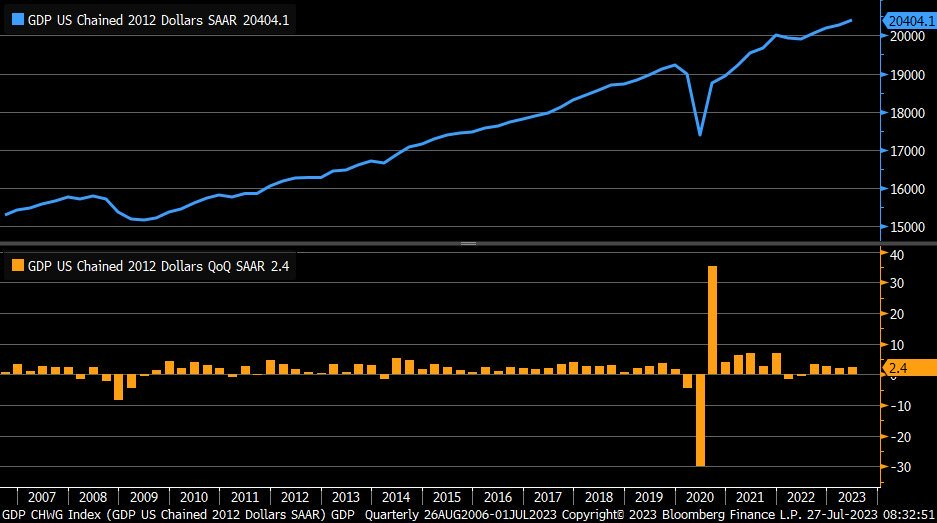 Powell nhấn mạnh việc Fed không còn nhìn thấy nguy cơ suy thoái đối với nền kinh tế. Dường như báo cáo GDP quý II/2023 ủng hộ nhận định này từ Fed.