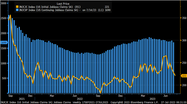 số lượng đơn xin trợ cấp thất nghiệp mới tiếp tục giảm chỉ còn+221,000 trong tuần qua (thấp hơn con số ước tính +235,000).