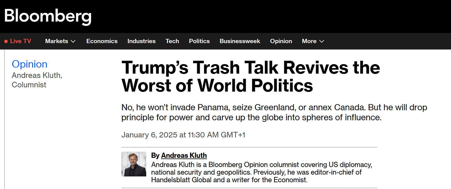 Do vậy, chính trường quốc tế không lo ngại việc Trump sẽ xâm lược Panama, Greenland hay Canada - vì ông sẽ không làm vậy! Điều họ lo sợ là, Trump đang đi theo con đường của Putin và Tập Cận Bình, khi theo đuổi thứ quyền lực thô sơ và bành trướng phạm vi ảnh hưởng tới các nước lân cận dựa vào vũ lực. Và họ lo sợ rằng, nước Mỹ dưới thời kỳ của Trump có thể sẽ không còn bảo vệ Ukraine, Đài Loan hay thậm chí là Nhật Bản và Estonia. Từ đó, sẽ có một trật tự thế giới mới được mở ra.