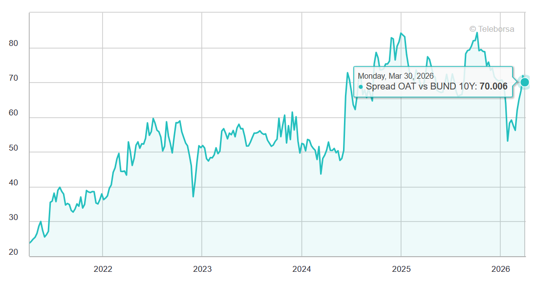 Nếu nhìn vào diễn biến của OAT–Bund spread trong vài năm gần đây - từ khoảng 30 bps năm 2021 lên gần 80 bps hiện tại - có một điều trở nên rõ ràng: mỗi cuộc khủng hoảng chính trị tại Pháp đều để lại “sẹo” trên đường cong lợi suất.