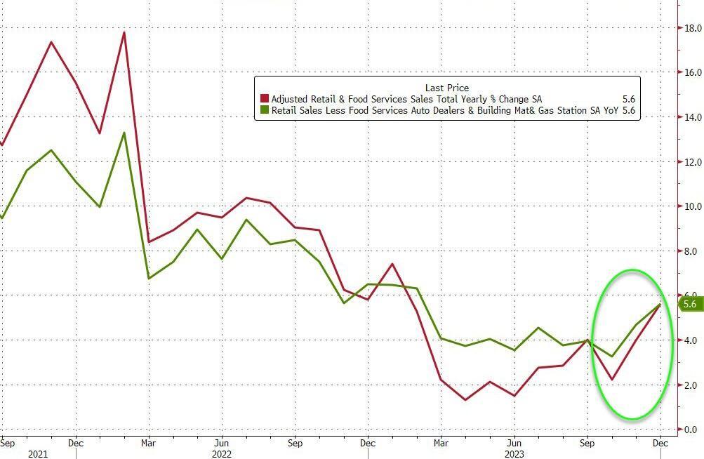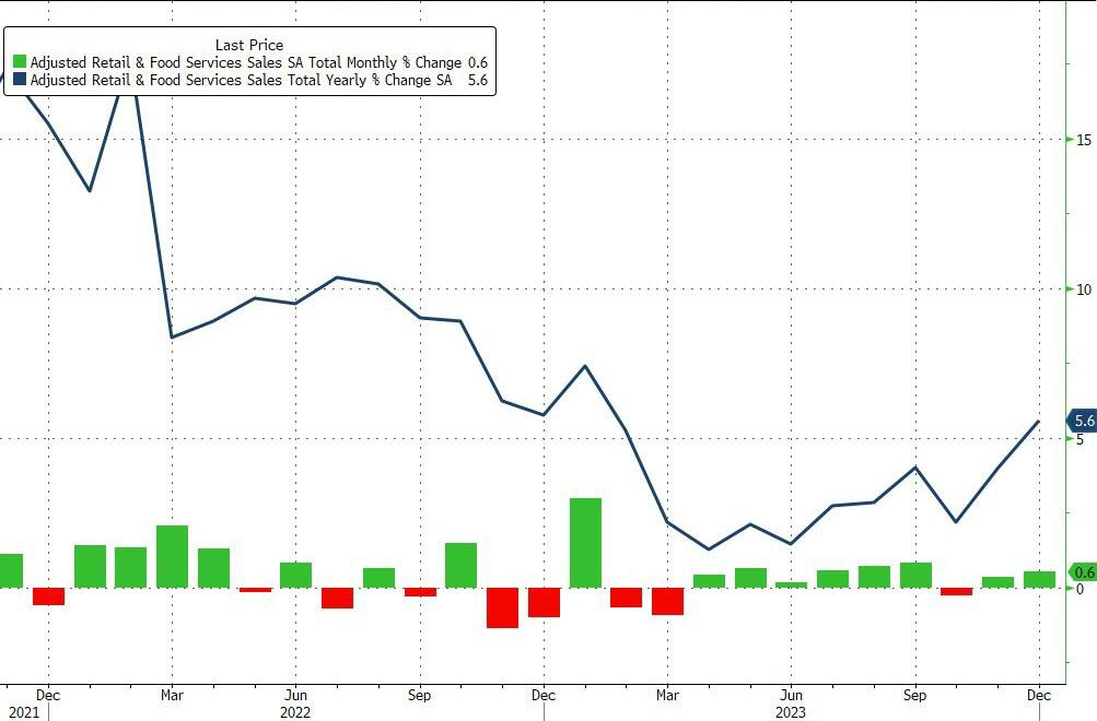 Cả doanh số bán lẻ tổng hợp và cốt lõi đều tăng trở lại - kết thúc năm 2023 ở mức 5.6% Y/Y