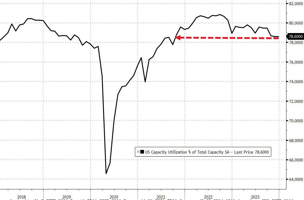Công suất khai thác năng lực sản xuất giảm xuống mức thấp nhất kể từ tháng 9 năm 2021 ở mức 78.6%