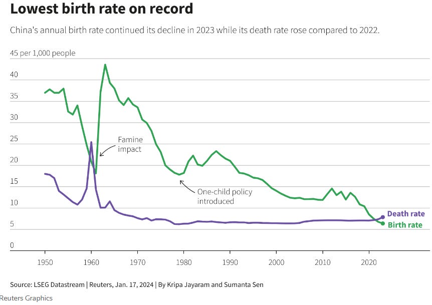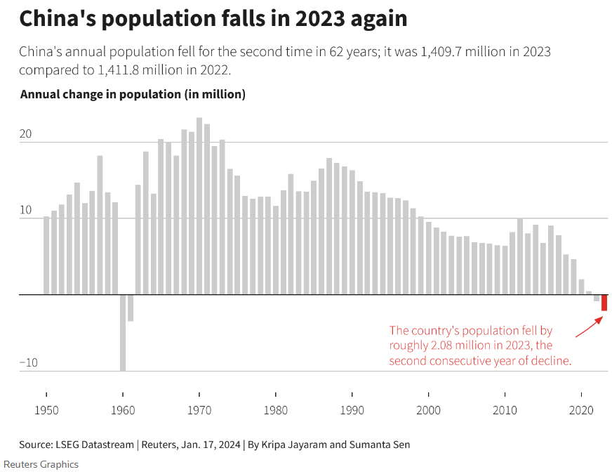 Dân số Trung Quốc năm 2023 giảm 0.15% Y/Y - năm giảm thứ 2 liên tiếp