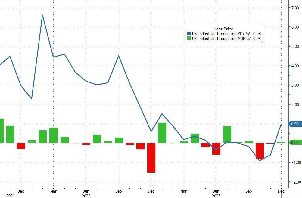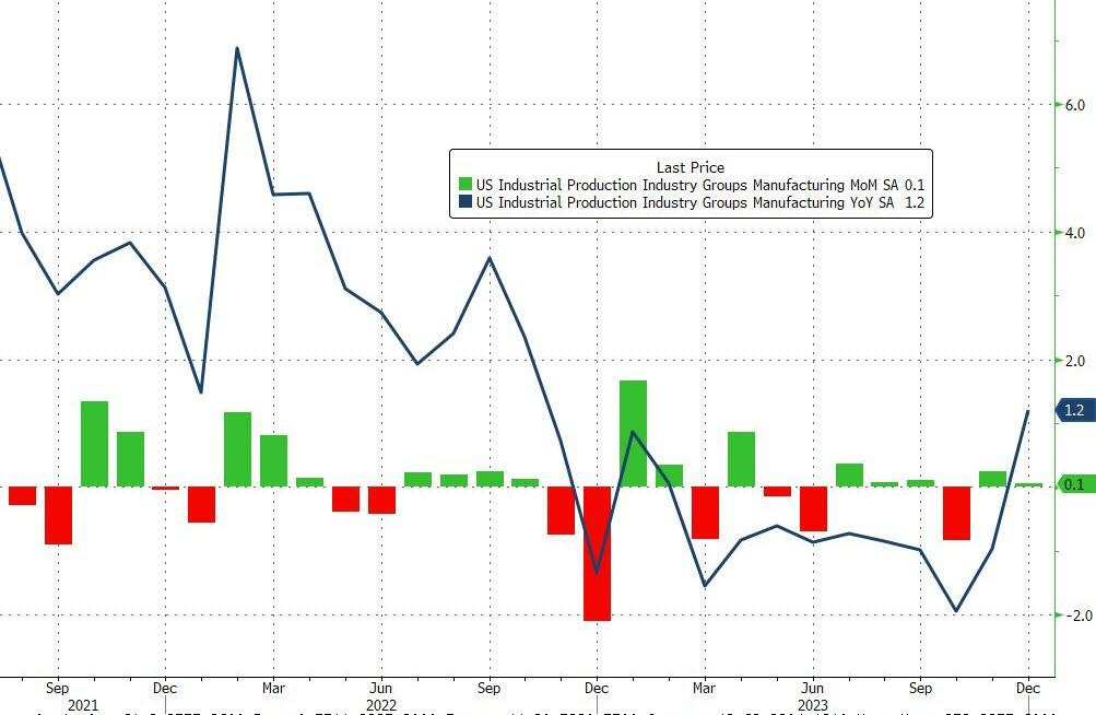 Sản lượng sản xuất tăng +0.1% MoM và +1.2% Y/Y trong tháng 12.
