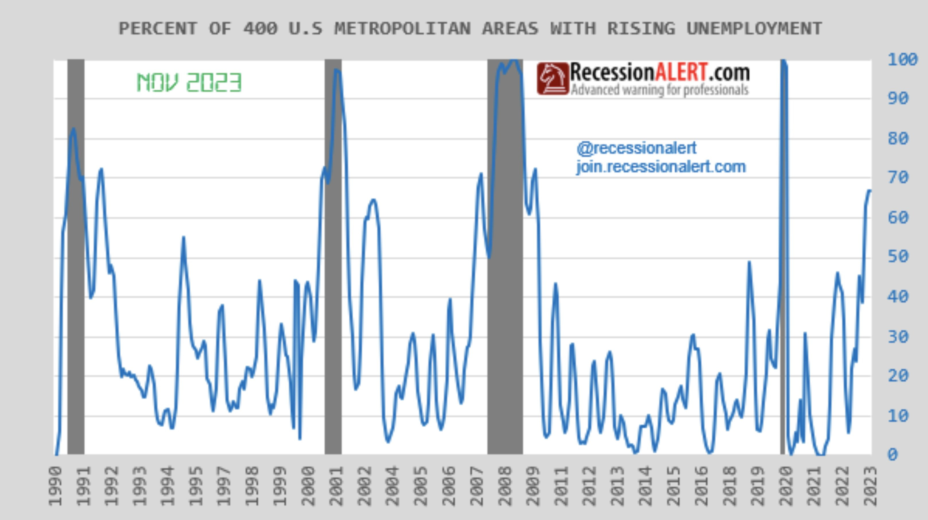 ~70% trong số 400 đô thị của Hoa Kỳ hiện có tỷ lệ thất nghiệp gia tăng. Tỷ lệ thất nghiệp cao như vậy chỉ được nhìn thấy ngay trước thời kỳ suy thoái