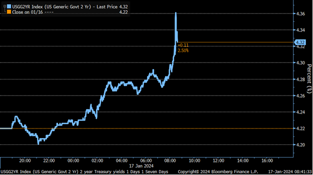 Lợi suất 2Y T-bond cũng tăng vọt sau thông tin về doanh số bán lẻ.