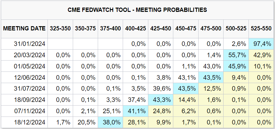 Thị trường hiện định giá Fed sẽ cắt lãi suất -25 bps ngay trong cuộc họp tháng 3, và sẽ có tổng cộng 6 lần cắt lãi suất trong năm 2024