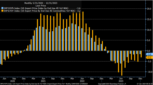Giá nhập khẩu sụt giảm => tốt cho lạm phát hàng hóa (nhưng lạm phát đối với hàng hóa đã giảm, nhìn vào thước đo dịch vụ).