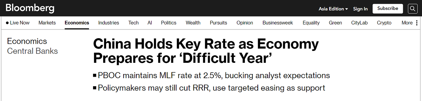 Trái với kỳ vọng của thị trường trước bối cảnh giảm phát, PBOC vẫn duy trì lãi suất cho vay trung hạn (MLT rate) ở mức 2.5% và chưa có động thái giảm lãi suất.