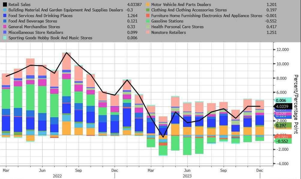Doanh số bán lẻ tháng 12 tăng +0.6% M/M - bước nhảy vọt mạnh nhất từ tháng 9,