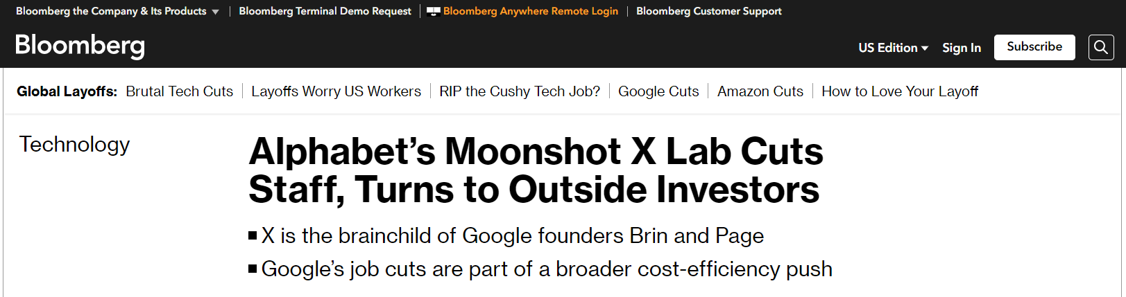 Phòng thí nghiệm công nghệ Moonshot X của Alphabet sa thải hàng chục nhân viên, tìm đến các nhà đầu tư bên ngoài để tài trợ cho các dự án của mình.