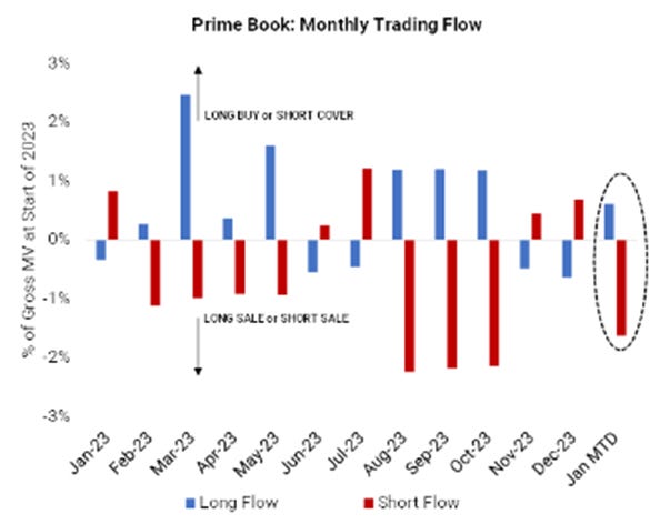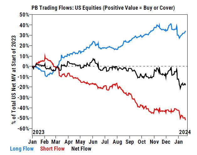 Lệnh short vượt trội so với lệnh long với tỷ lệ 2:1 trong tuần qua và 3:1 kể từ đầu năm, theo thống kê của Goldman Sachs