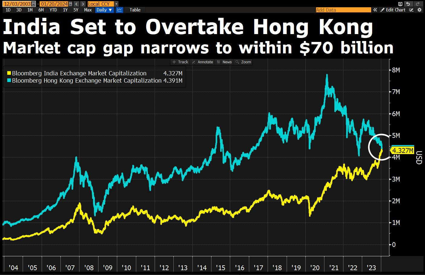 Ấn Độ rất có thể sớm vượt qua Hồng Kông để trở thành thị trường chứng khoán lớn thứ tư thế giới.