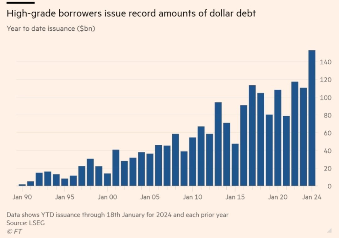 Các công ty chất lượng tốt (high-graded) đã phát hành hơn 150 tỷ USD trái phiếu trong 18 ngày đầu năm