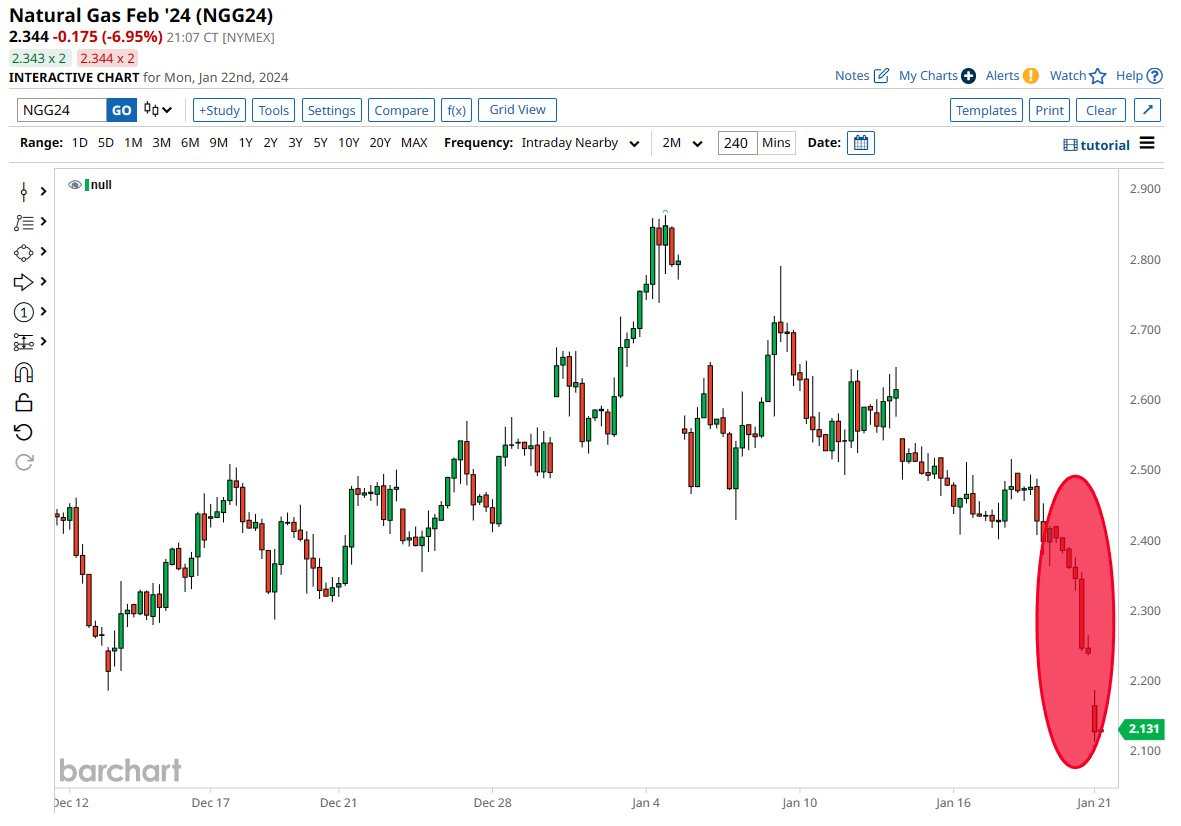 Giá khí tự nhiên sụt giảm liên tiếp kể từ chiều thứ Năm.