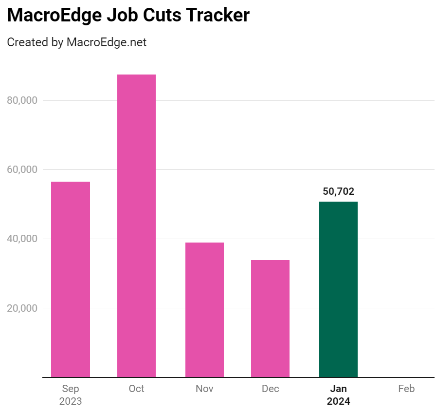 Tuy nhiên, số lượng việc làm bị cắt giảm đã tăng mạnh trong tháng 1, hiện ở mức 50,702 và đang trên đà tăng lên 65-75,000 việc làm/ tháng.