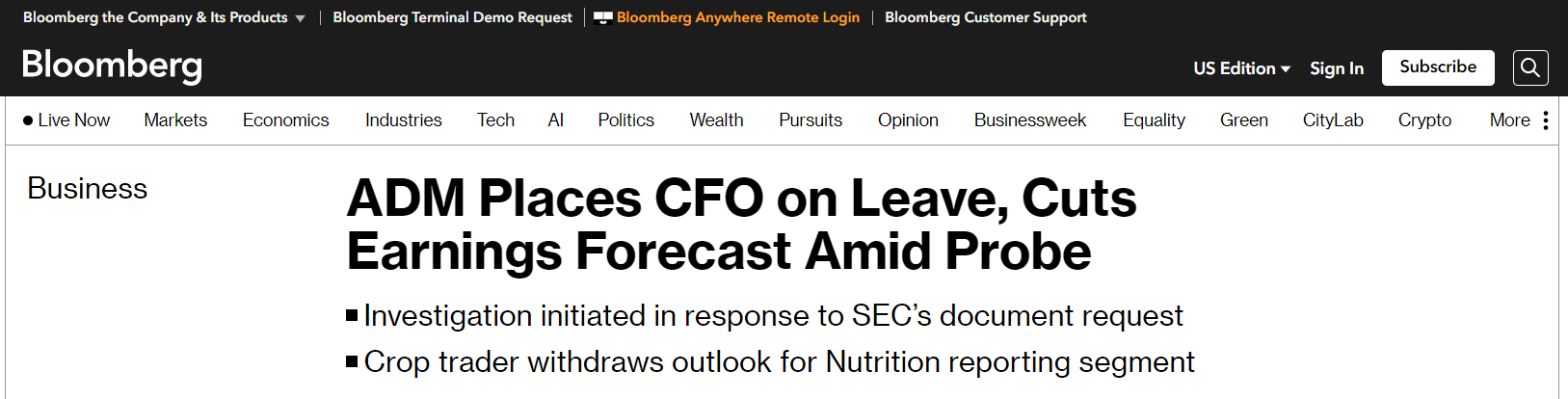 Gã khổng lồ nông nghiệp đã sa thải CFO và giảm lợi nhuận dự kiến khi bị điều tra về sổ sách theo yêu cầu của SEC.